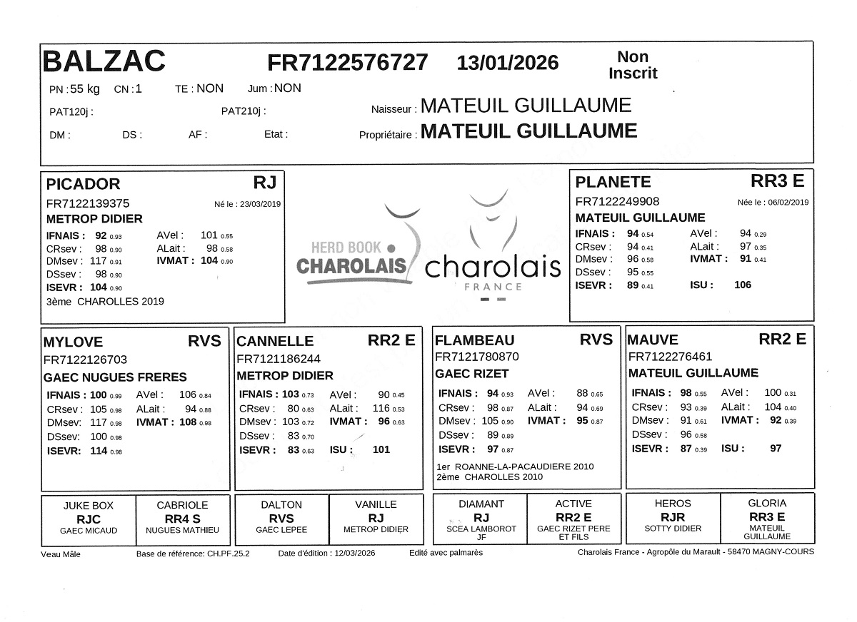 BLAZAC fils de PICADOR dont 100% de ses mâles vont à la reproduction. Veau ayant le plus de ressemblance avec son père au même âge. . Sa mère PLANETE est dans les meilleure vache en production laitière.