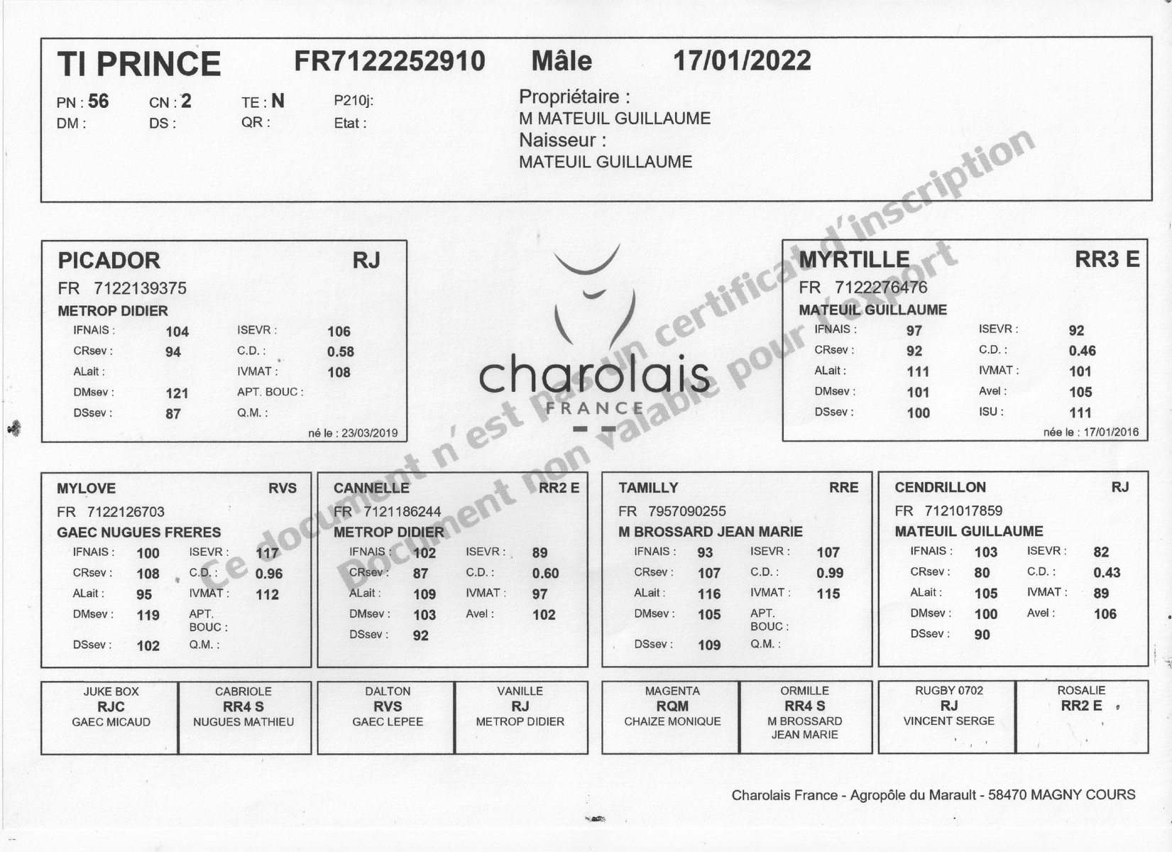 TI PRINCE, veau très typé viande fils de PICADOR. Sa mère MYRTILLE très grosse vache avec beaucoup de qualités maternelles était déjà bien suitée en 2020 de ROYAUME (voir veau 2020)