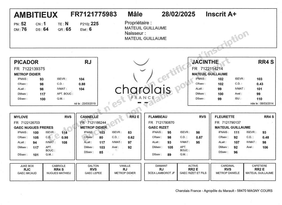 AMBITIEUX fils de PICADOR dont 100% de ses mâles vont à la reproduction.