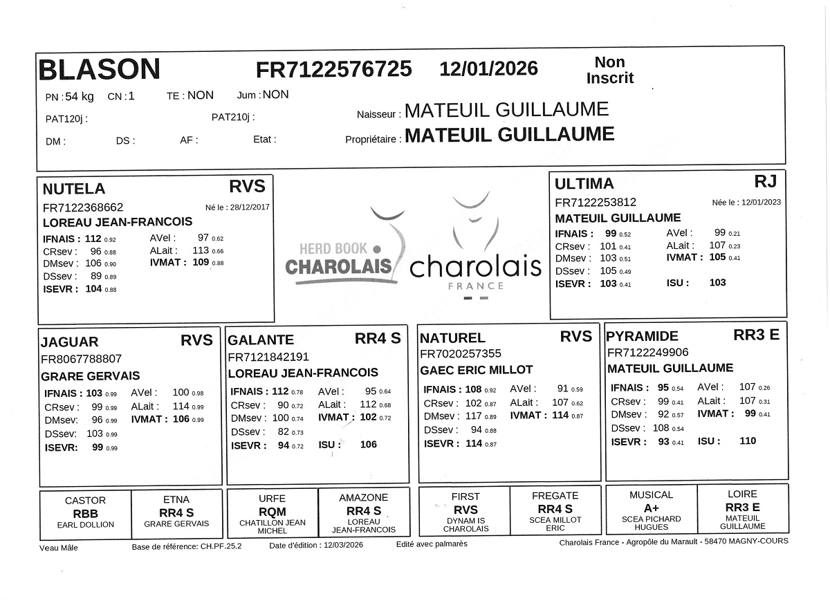 BLASON est un veau de génisse, né seul qui apportera beaucoup de qualités maternelles et laissera de très bonnes filles.