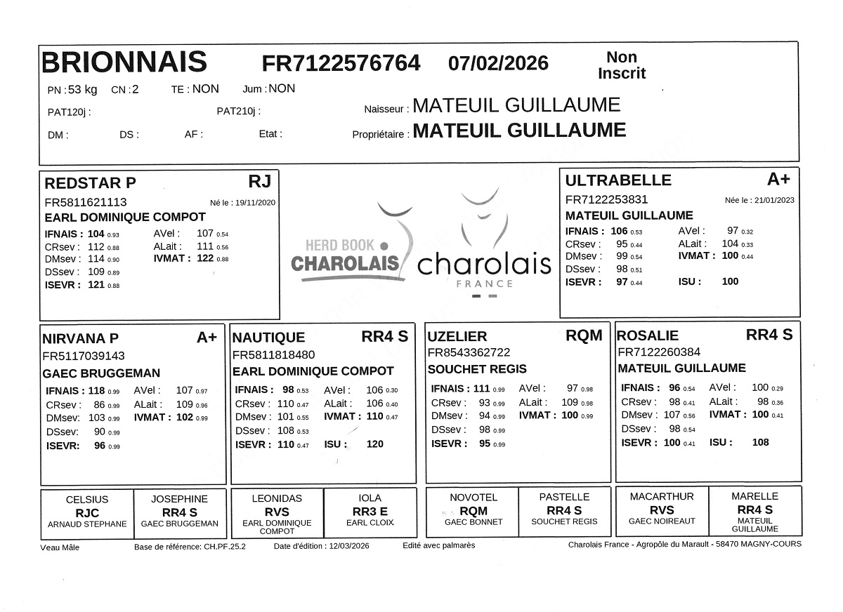 BRIONNAIS, un veau qui apportera qualités maternelles et il est hétérozygote sans corne.